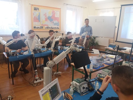 Główne zadania dla uczniów zajęcia dodatkowe z: Zaawansowanych metod lutowania i napraw pakietów elektronicznych wraz z komponentem dla pakietów elektronicznych działających w przestrzeni kosmicznej (IPC), z Pakietów elektronicznych z komponentami Ball Grid Array w praktyce, w tym również zastosowania SPACE (BGA); z Elektryczność statyczna, a urządzenia elektroniczne (ESD); program doradztwa zaw., zapewnienie płatnych letnich staży zaw. w firmach z woj. łódzkiego. Dla nauczycieli ZSP nr 1: szkolenia z IPC, ESD, BGA, programowania sterowników, z obsługi zakupionego sprzętu.